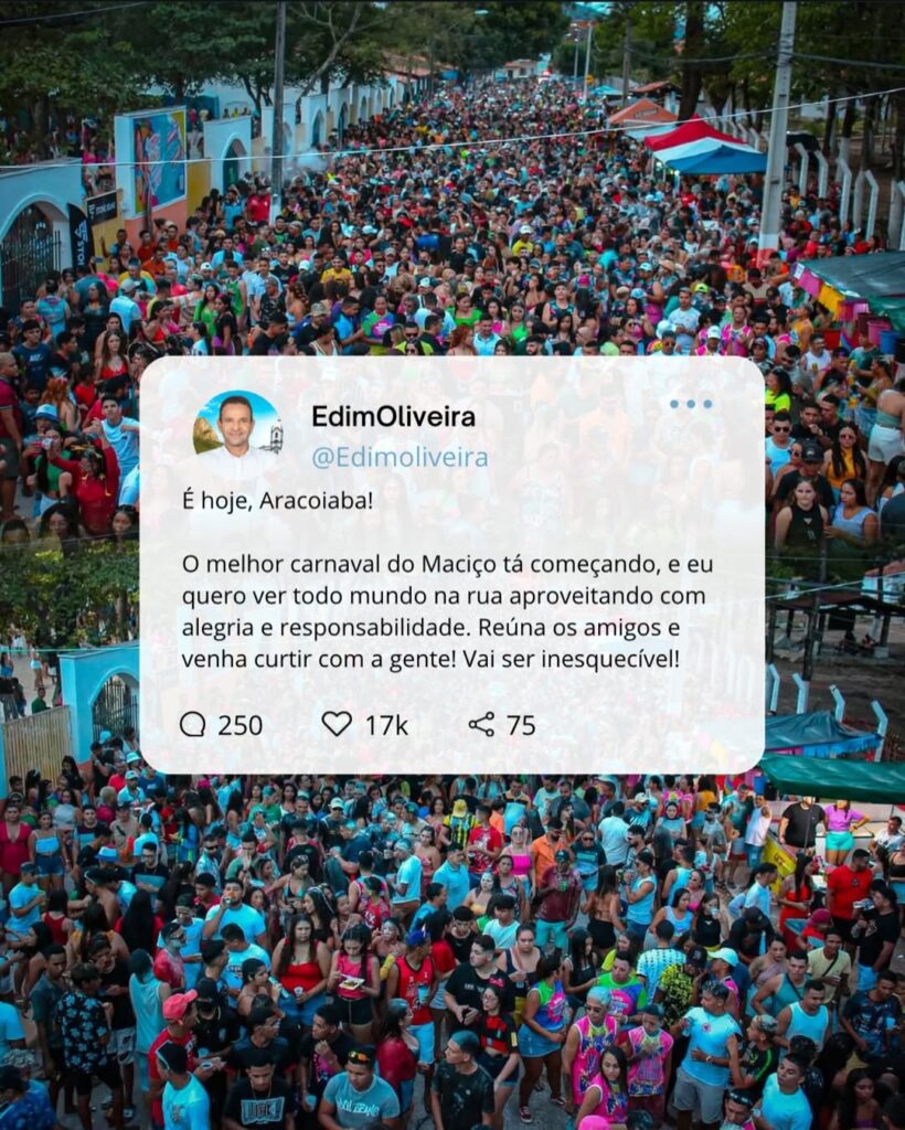 O primeiro dia do Carnaval de Aracoiaba superou todas as expectativas e reuniu uma verdadeira multidão nas ruas da cidade. Em um clima de muita festa e animação, foliões de todas as idades lotaram os espaços preparados para o evento, consolidando a festa como o verdadeiro Carnaval da Família.