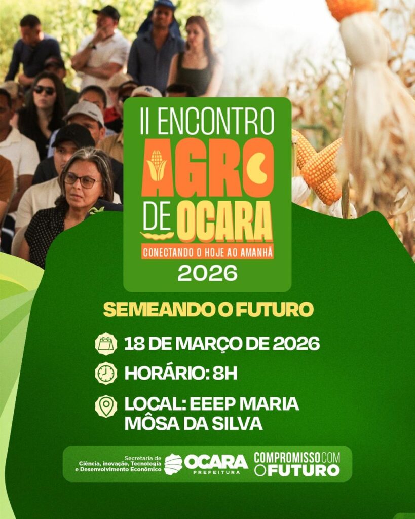 A cidade de Ocara recebe, na próxima quarta-feira, dia 18, o II Encontro Agro de Ocara, com o tema “Conectando o Hoje ao Amanhã”.